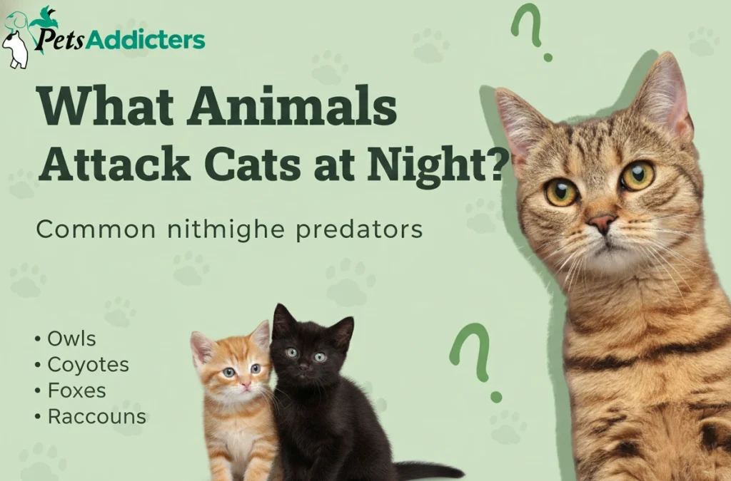 What animals attack cats at night? Coyotes, dogs, foxes, bobcats, owls, raccoons, fishers, wolves, and large snakes — all active and hunting when the sun goes down.